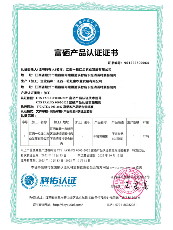 江西一粒紅塵農業發展有限公司是一家總部位于江西省贛縣的現代農業多元型企業,專注于食用菌的研發種植、深加工、貿易研教培農文旅等全產業鏈發展。公司秉承“健康、綠色、共享共贏”的核心價值觀,致力于引領鄉村振興之路,旨在成為......
